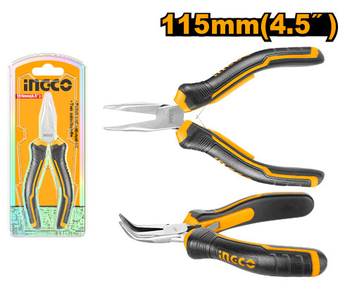 انبر دمباریک سر کج اینگکو مدل HMBNP08115 با ابعاد mini (۴٫۵ اینچ ≈ ۱۱۵ mm)، طراحی خاص بدون دندانه و نوک خمیده ۴۵ درجه، ابزاری ایدهآل برای کارهای ظریف و دسترسپذیری در فضاهای تنگ است. بدنه از فولاد کروم‑وانادیوم (Cr‑V) ساخته شده و دارای پوشش پولیشکاریشده با روغن ضدزنگ است که مقاومت بالا در برابر خوردگی و ساییدگی را تضمین میکند. دستهای فلزی با روکش TPR دو رنگ عایق و ضد لغزش دارد که راحتی و کنترل خوبی در استفاده فراهم میکند. این ابزار مناسب برای بریدن، نگه داشتن یا خمدادن انواع سیم، کابل و قطعات کوچک در پروژههای برقکاری، تعمیرات دقیق، مدلسازی و صنایع دستی حرفهای است.