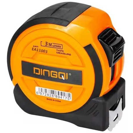 متر 3 متری اصلی دینگی مدل EA1003 یک ابزار اندازهگیری دقیق و بادوام است که برای کارهای روزمره، ساختمانی، نجاری و صنعتی طراحی شده است. این متر دارای بدنه مقاوم با روکش پلاستیکی ضدضربه است که در برابر افتادن و فشار مقاومت بالایی دارد. نوار اندازهگیری آن از جنس فولاد فنری با پوشش ضدسایش ساخته شده و به وضوح مدرج شده است تا خوانایی بالایی داشته باشد. قفل محکم و روان، کنترل کامل روی طول نوار را فراهم کرده و کمربند یا گیره کناری حمل آسان را ممکن میسازد.