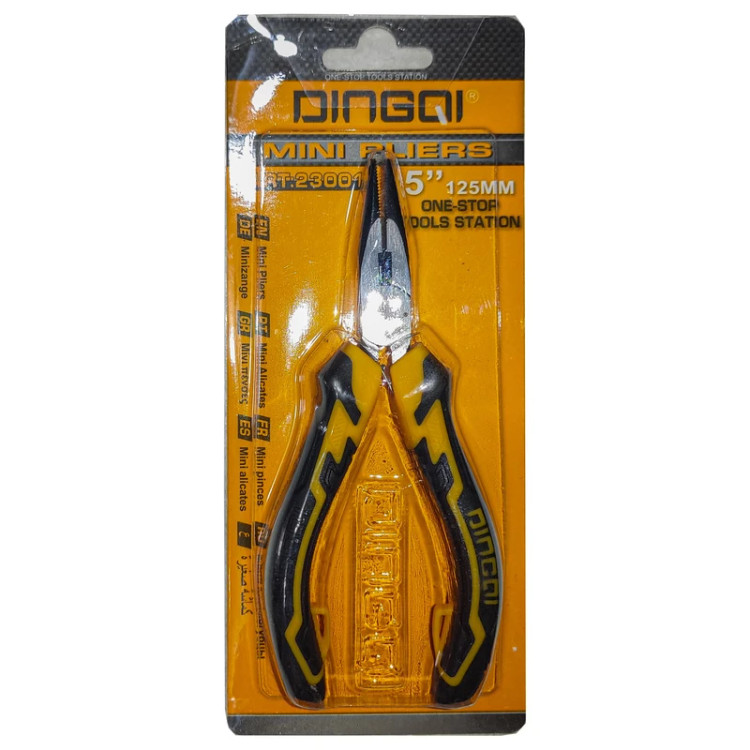 دم باریک 5 اینچ الکترونیکی دینگی مدل 23001 یک ابزار کوچک، دقیق و کاربردی است که برای کارهای ظریف الکترونیکی، تعمیرات موبایل، بردهای الکتریکی و ساخت قطعات ظریف استفاده میشود. این دم باریک با فکهای باریک و نوک تیز، دسترسی آسان به فضاهای محدود را فراهم میکند. بدنه از فولاد باکیفیت ساخته شده و دارای روکش ضدزنگ است. دستهها با روکش PVC ضدلغزش پوشیده شده تا در استفاده طولانیمدت راحتی و ایمنی بیشتری ایجاد شود.