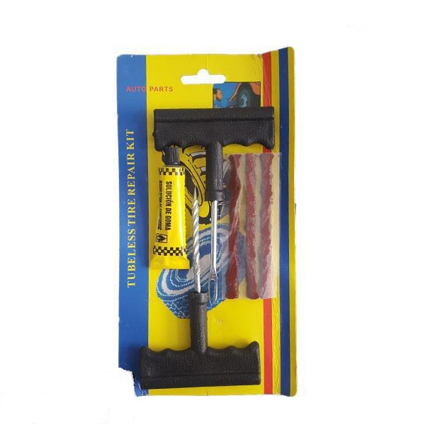 کیت پنچرگیری لاستیک خودرو مخصوص لاستیکهای تیوبلس در این قسمت با کمترین قیمت ارائه شده است. این مجموعه شامل دو عدد تی توپ لاستیک است که ابزار پنچرگیری ماشین هستند و برای سوراخ کردن و ایجاد بریدگی در سطح داخلی لاستیک استفاده می شود که شکل سوراخ ایجاد شده برای ترمیم با چسب و لاستیک مخصوص آماده شود. ۳ عدد اصطلاحا نخ پنچرگیری و یک عدد چسب مخصوص نیز همراه این مجموعه ارائه می شود. بهترین کیت پنچرگیری در این محدوده قیمت را می توان مجموعه ارائه شده در این قسمت دانست.